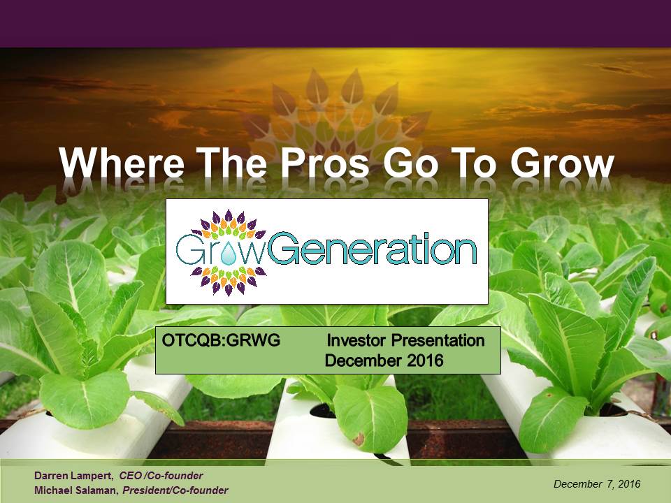 Darren Lampert, CEO /Co - founder Michael Salaman, President/Co - founder December 7, 2016 Where The Pros Go To Grow