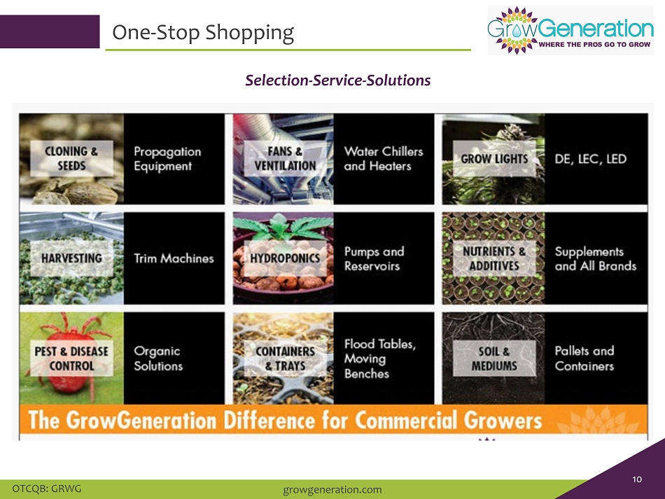 OTCQB: GRWG 10 One - Stop Shopping Selection - Service - Solutions growgeneration.com