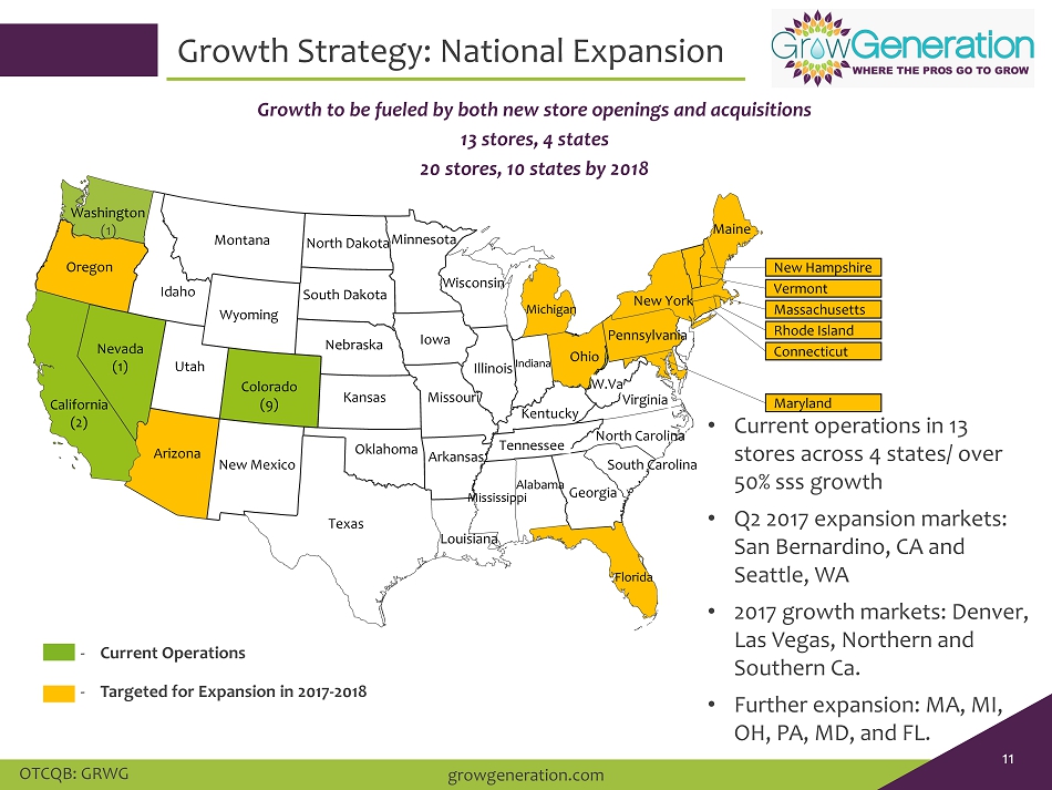 OTCQB: GRWG 1 Investor Presentation June 2017 OTCQB: GRWG growgeneration.com