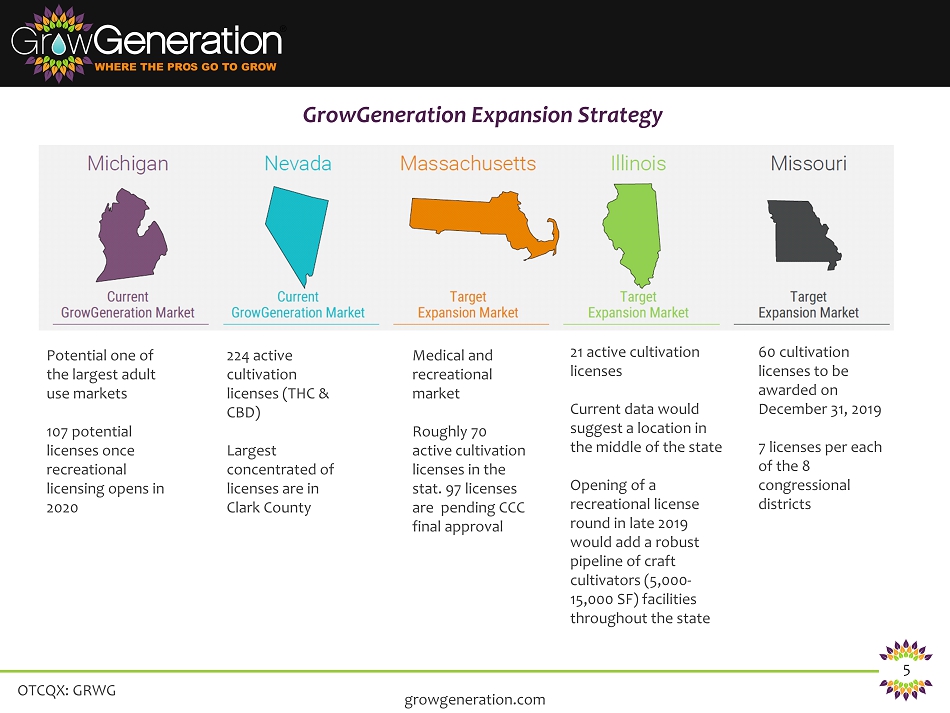 OTCQX: GRWG 4 Current GrowGeneration Operations growgeneration.com