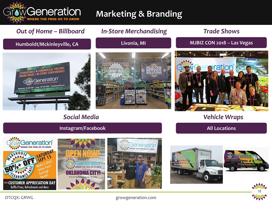 OTCQX: GRWG 11 growgeneration.com Humboldt/Mckinleyville, CA Out of Home – Billboard In - Store Merchandising Livonia, MI Vehicle Wraps Trade Shows MJBIZ CON 2018 – Las Vegas Social Media Instagram/Facebook All Locations Marketing & Branding