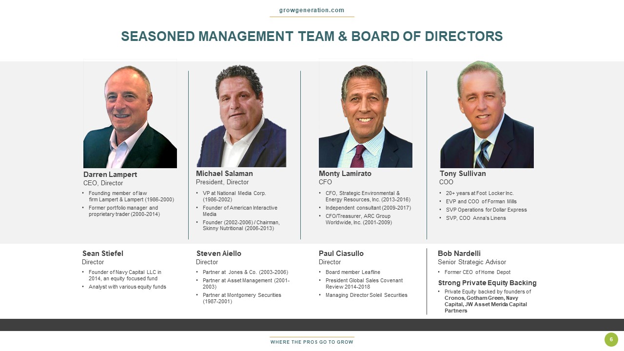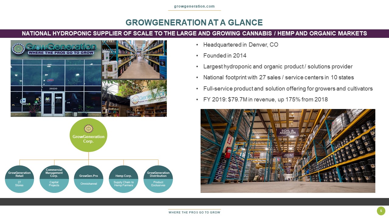 WHERE THE PROS GO TO GROW growgeneration.com 4 1) Company and Market Overview