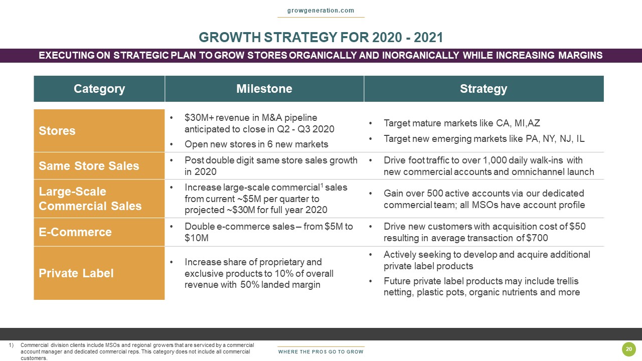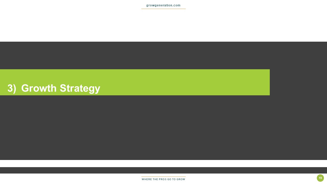 WHERE THE PROS GO TO GROW growgeneration.com 19 3) Growth Strategy