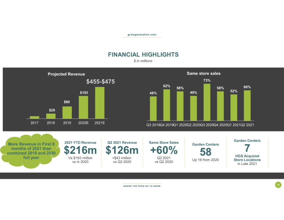 BIG OPPORTUNITY IN PRIVATE LABEL PRODUCTS 2021 STRATEGY IS TO GROW PRIVATE BRANDS & PRIVATE LABEL OFFERINGS THAT HAVE ATTRACTIVE GROSS MARGINS growgeneration.com Exclusively distributed by GrowGeneration 9 WHERE THE PROS GO TO GROW