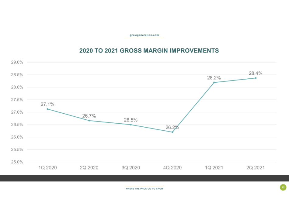 2019 TO 2021 QUARTERLY REVENUE GROWTH GrowGeneration Total Revenue ($000) growgeneration.com 13,087 11 WHERE THE PROS GO TO GROW 19 , 48 3 21 , 77 8 25 , 38 7 61,886 55,046 43,452 32,982 90 , 02 2 12 5, 88 5 - 1Q 2019 2Q 2019 3Q 2019 4Q 2019 1Q 2020 2Q 2020 3Q 2020 4Q 2020 1Q 2021 2Q 2021 2 0 , 0 00 4 0 , 0 00 6 0 , 0 00 8 0 , 0 00 100,000 120,000 140,000